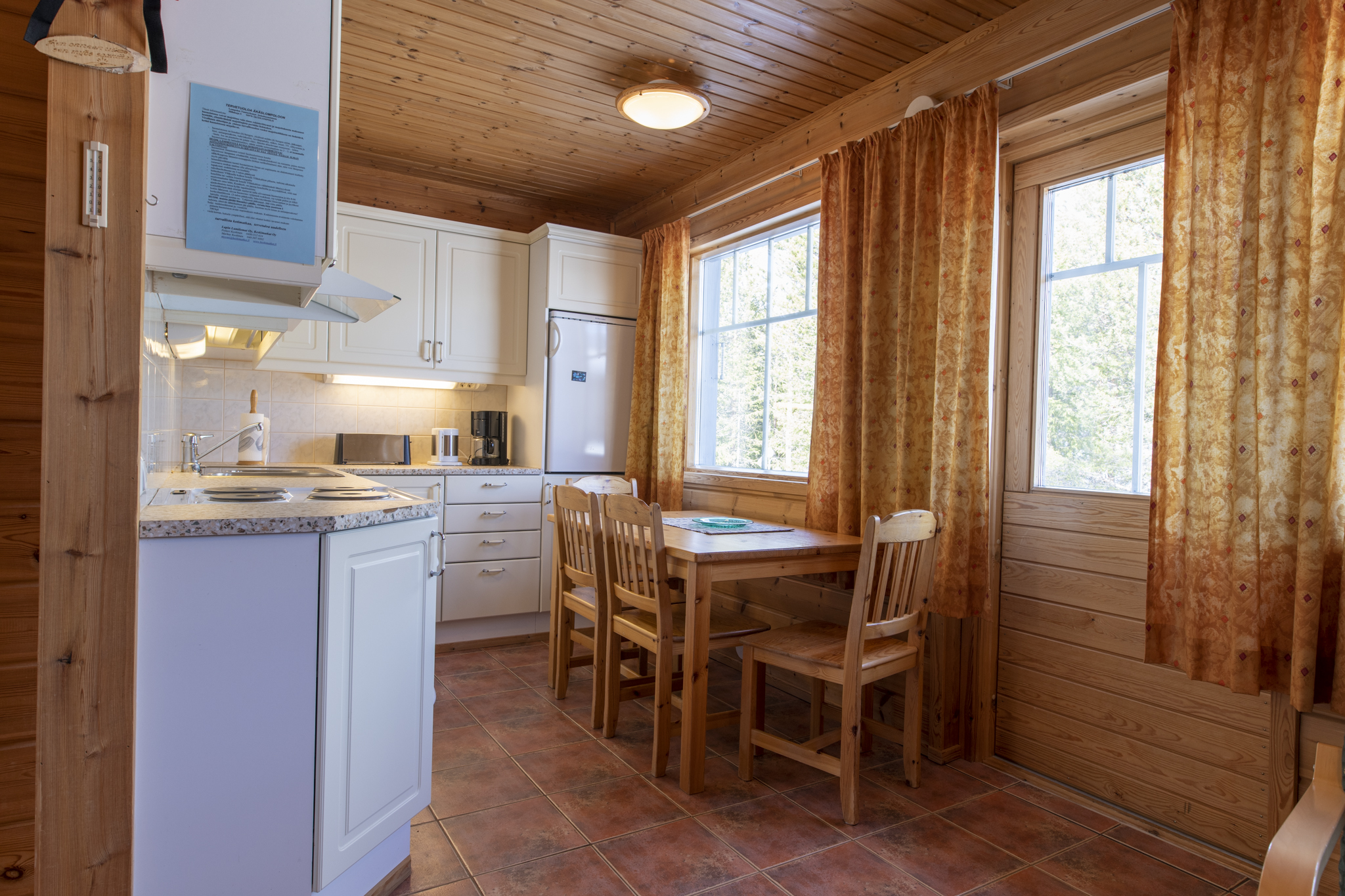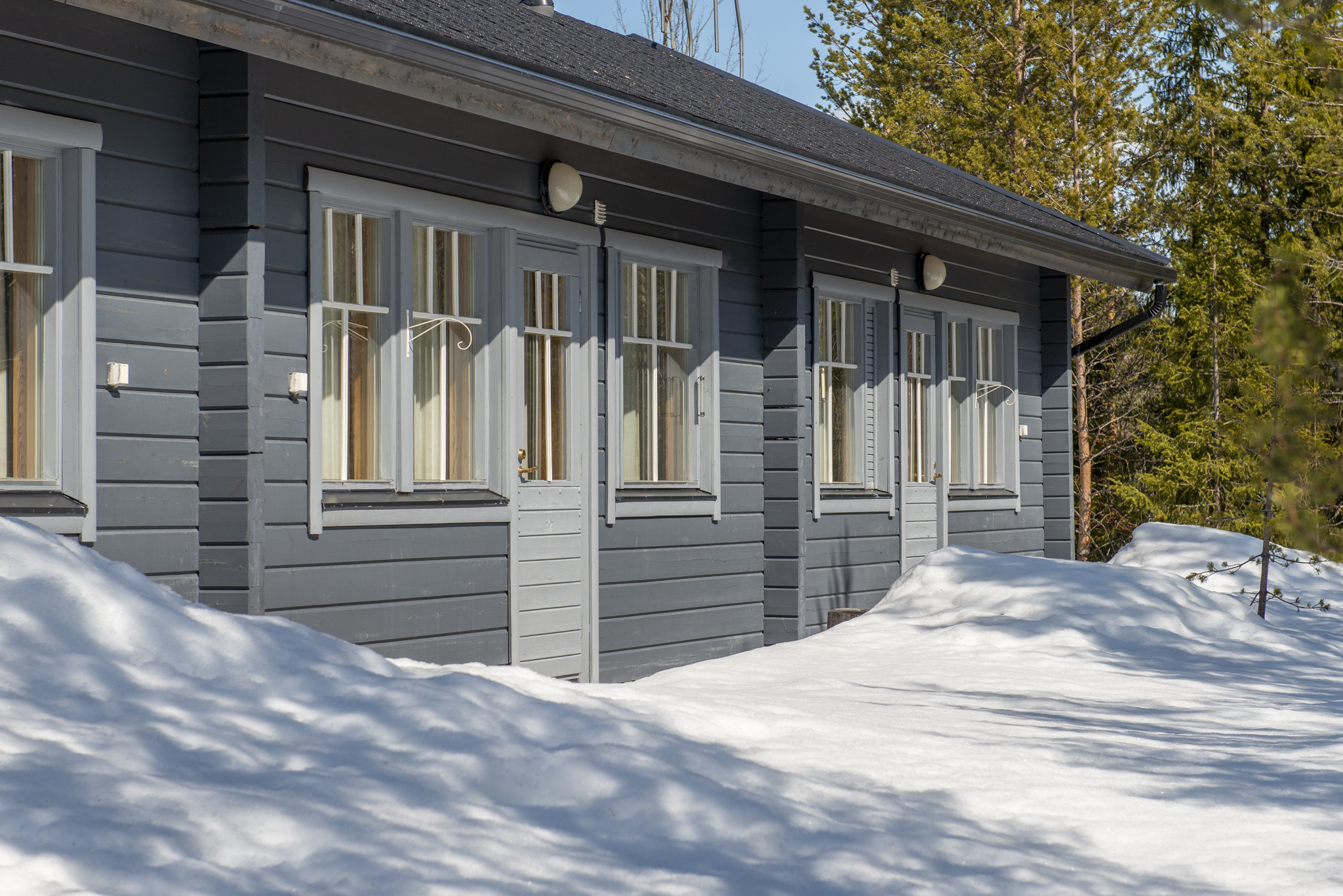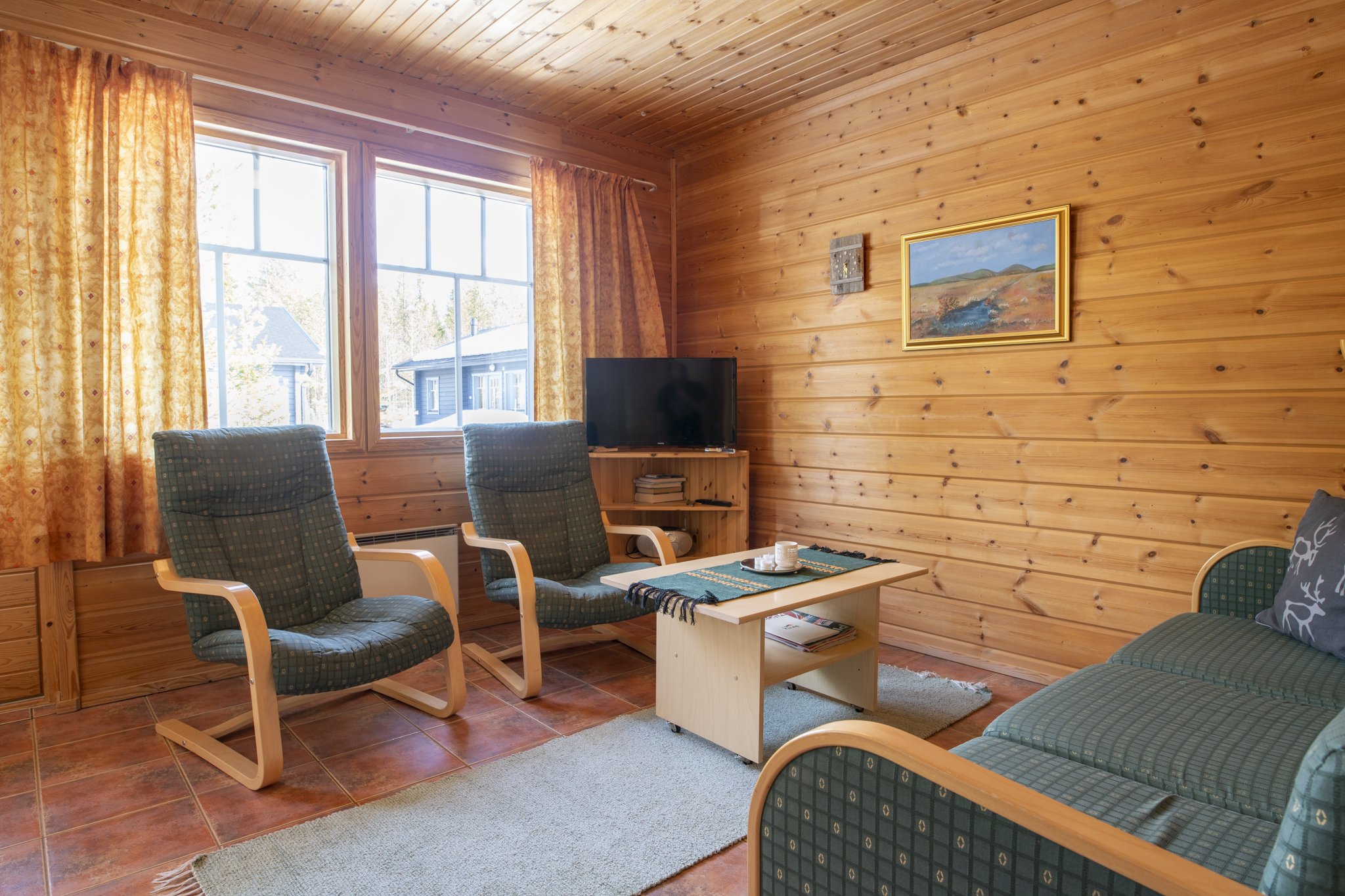 Rauhallisella alueella sijaitseva viihtyisä lomahuoneisto Äkäslompolon keskustassa.