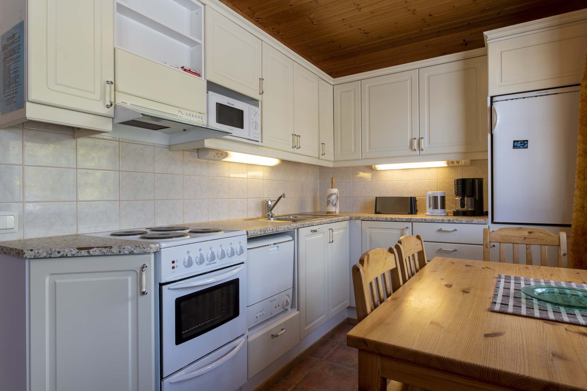 - Astiasto, astianpesukone, jääkaappi, mikro, kahvinkeitin, leivänpaahdin, silitysrauta ja -lauta, imuri, televisio, vuodesohva, vaatteiden, kuivauskaappi